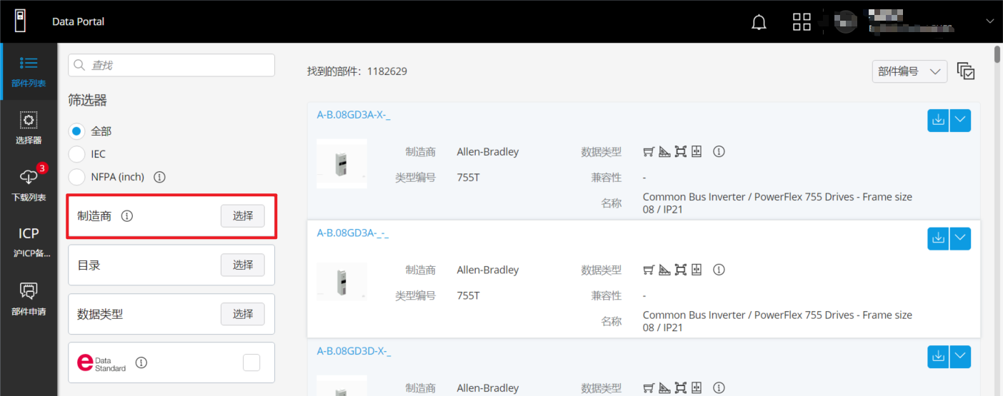 在Eplan Data Portal平臺(tái)中,點(diǎn)擊制造商選擇按鈕,然后選擇明緯Logo,點(diǎn)擊應(yīng)用。