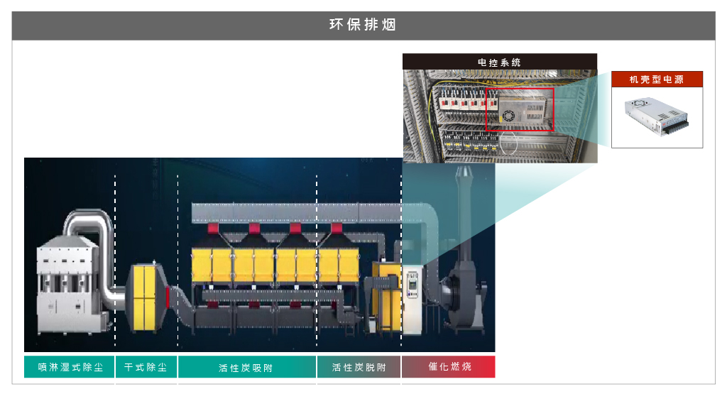 企業(yè)于生產(chǎn)過程中產(chǎn)生的廢氣恐對大環(huán)境造成沖擊影響,MEANWELL 重視環(huán)境議題,規(guī)劃蘇州新園區(qū)導入先進的環(huán)保排煙系統(tǒng)(RCO),主要功能采自動開關控制,遠程監(jiān)控其運作正常,所排出氣體對環(huán)境的沖擊降到最低。解決方案推薦