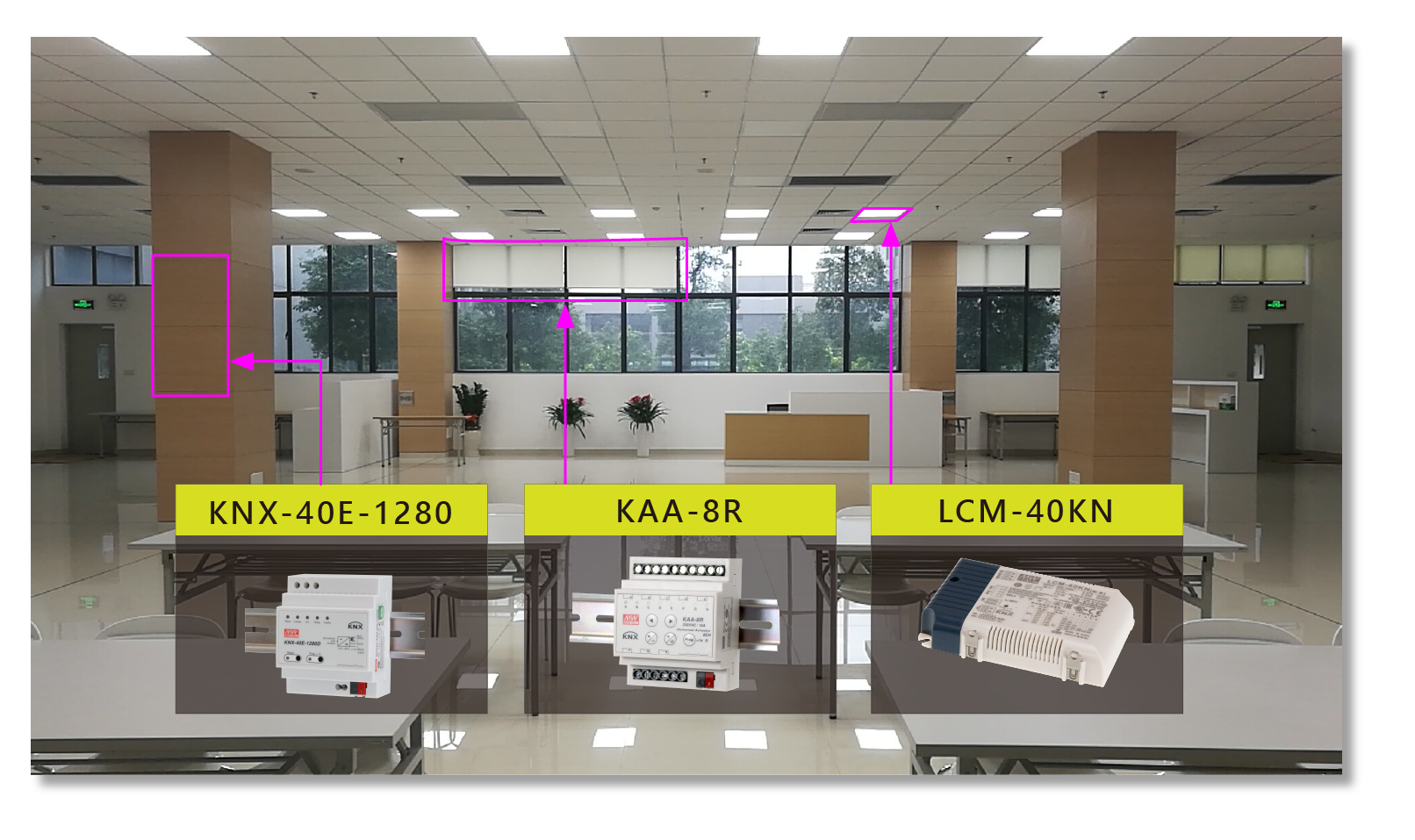 80盞LED燈:LCM-40KN6套電動(dòng)窗簾:KAA-8R4套燈箱背光:KAA-4R4V電 力 監(jiān) 測(cè):PMU-01KNX 總線電源:KNX-40E-1280KNX LCD Panel:思悅智能