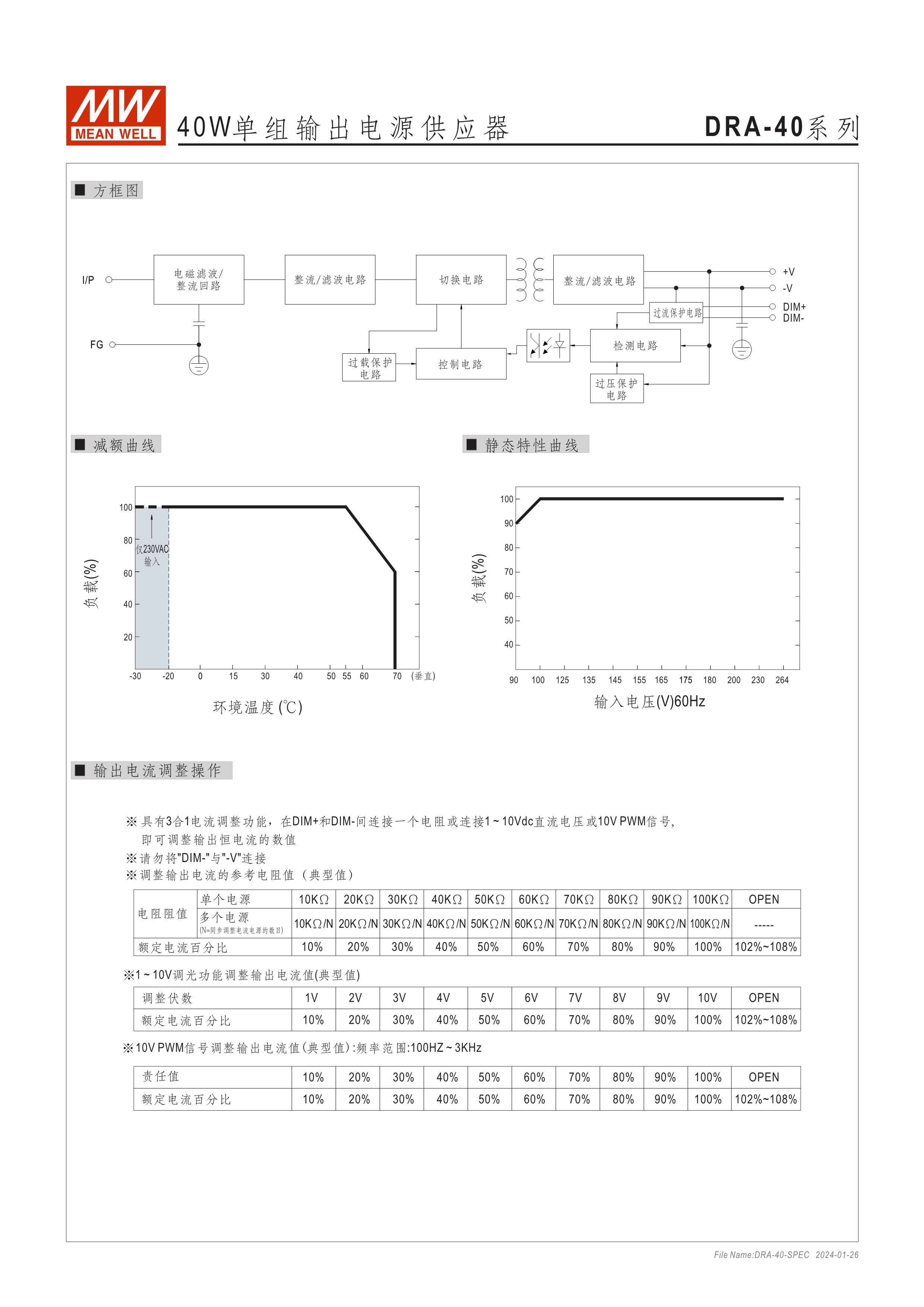 塑料機(jī)殼 單相,全范圍輸入 輸出電流可透過1~10VDC, PWM信號或電阻調(diào)設(shè)于原額定值的 10~100% 適合安裝于DIN Rail TS-35 / 7.5或15 適合于視覺檢測設(shè)備及植物栽培系統(tǒng)