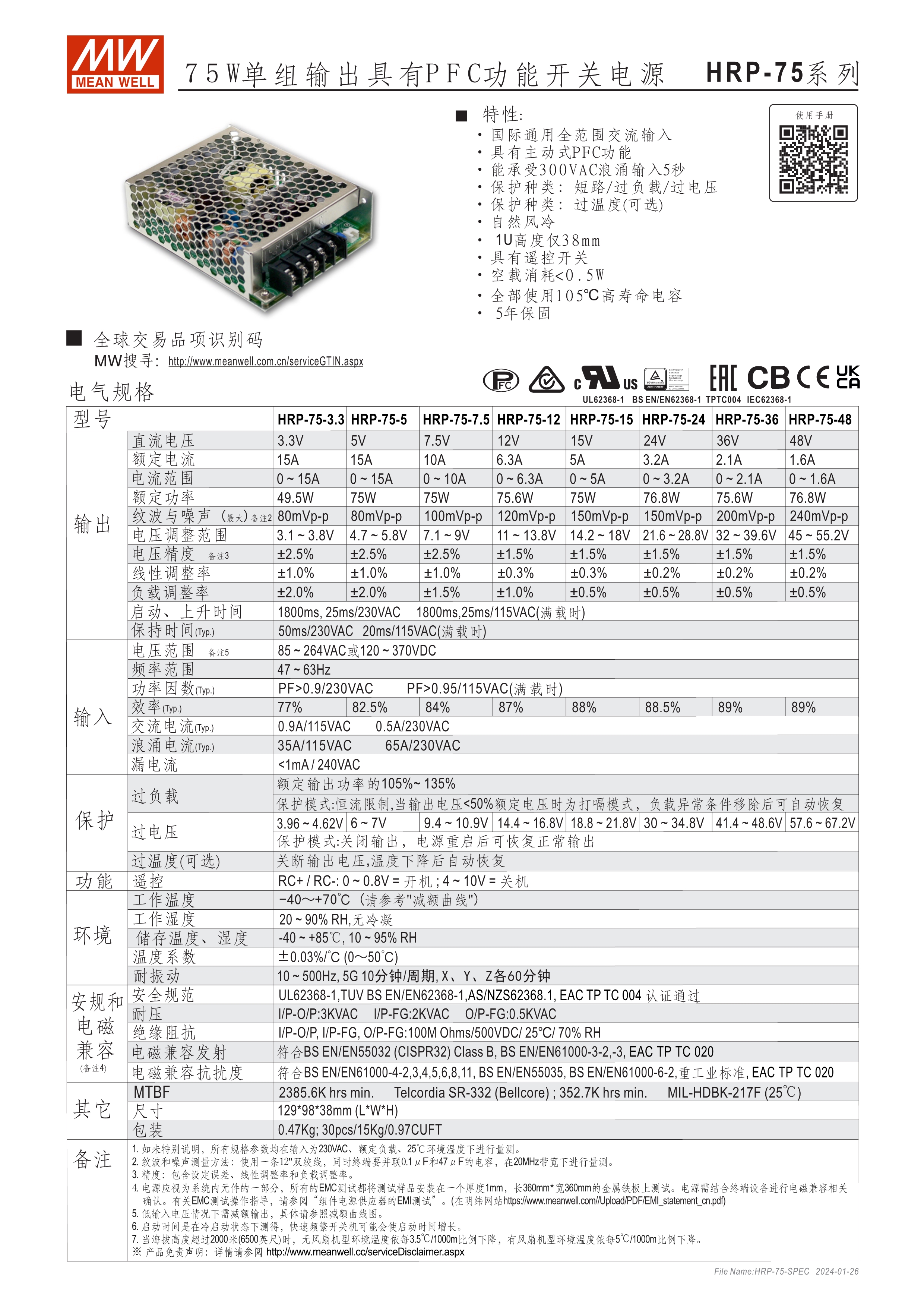 內(nèi)建主動(dòng)式功率因子矯正功能(active PFC) 高效能,空載待機(jī)消耗瓦數(shù)<0.5W~0.75W 5年保固期