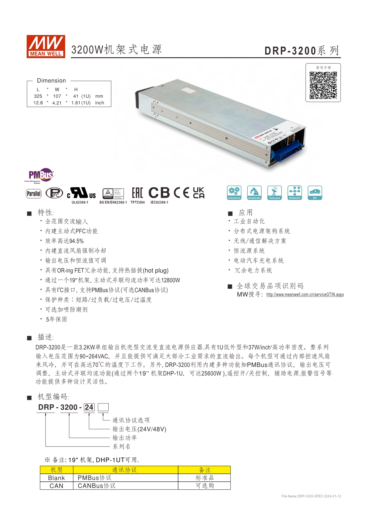 系統(tǒng)電源解決方案 (PDF) 完整的機箱安裝前置式方案,含整流器與充電器 1U低高度 19吋機箱供選擇