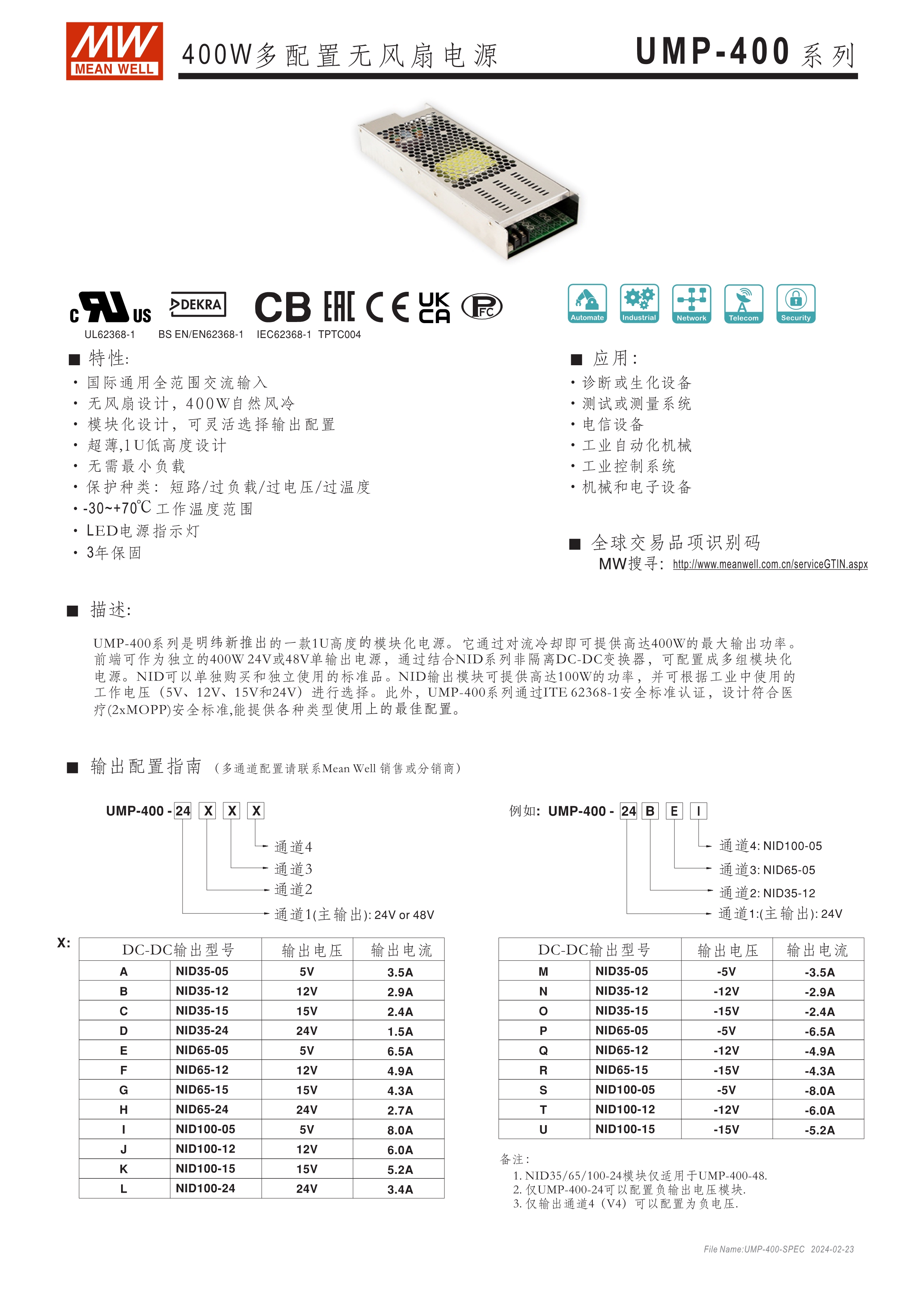 無風扇薄型化設(shè)計,機身高度低于1U,適合封閉型無對外散熱之工控/醫(yī)療設(shè)備 可單機單路輸出,有可選用 采模塊化設(shè)計,亦可搭配DC-DC模塊卡(NID35/65/100系列機種) 提供多路輸出電壓 采無風扇設(shè)計 不須外加散熱傳導底板可操作于-30~+70°C° 符合OVCIII要求 可操作在高海拔5000米 設(shè)計符合2x MOPP絕緣等級,適合BF rated醫(yī)療設(shè)備使用