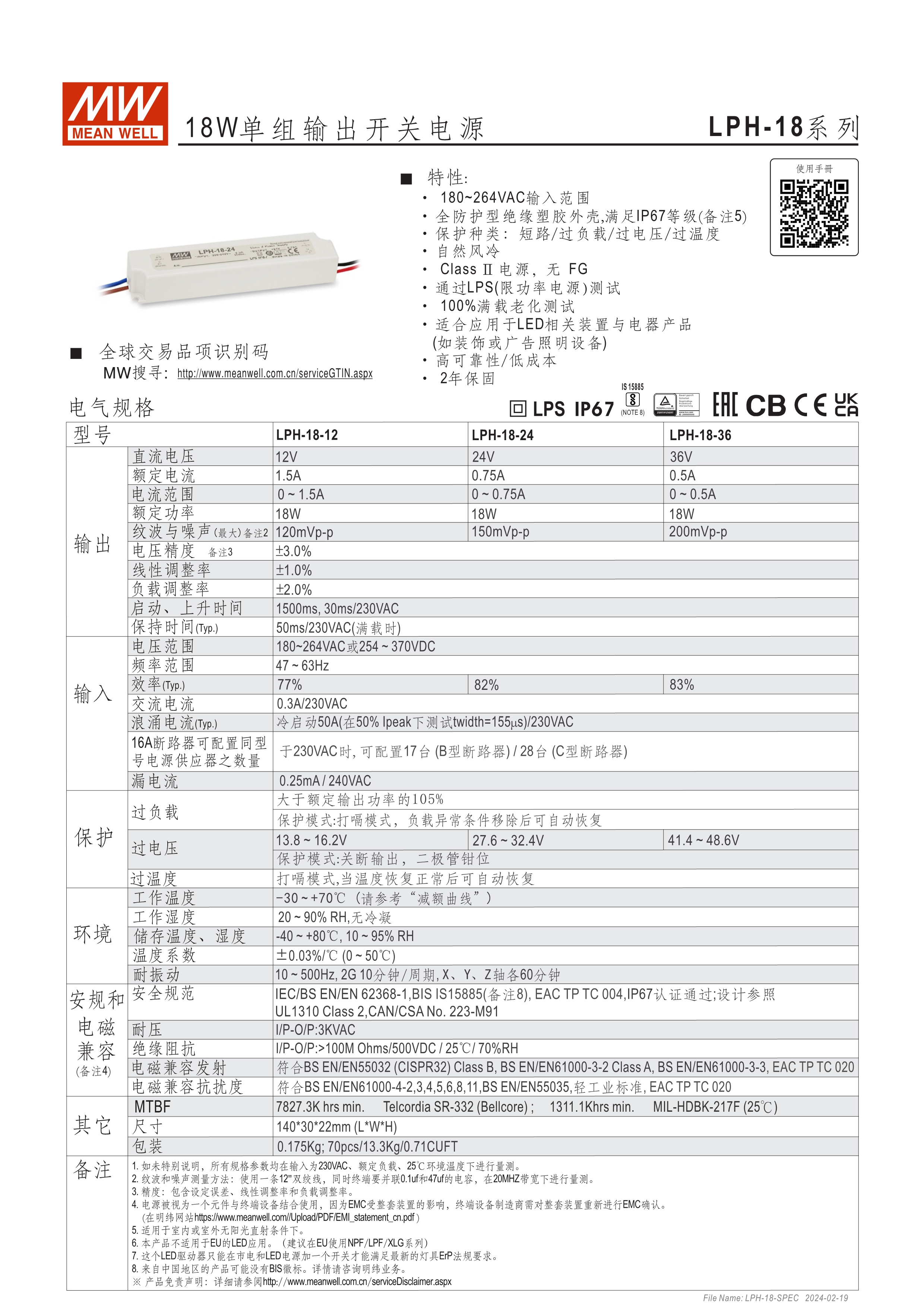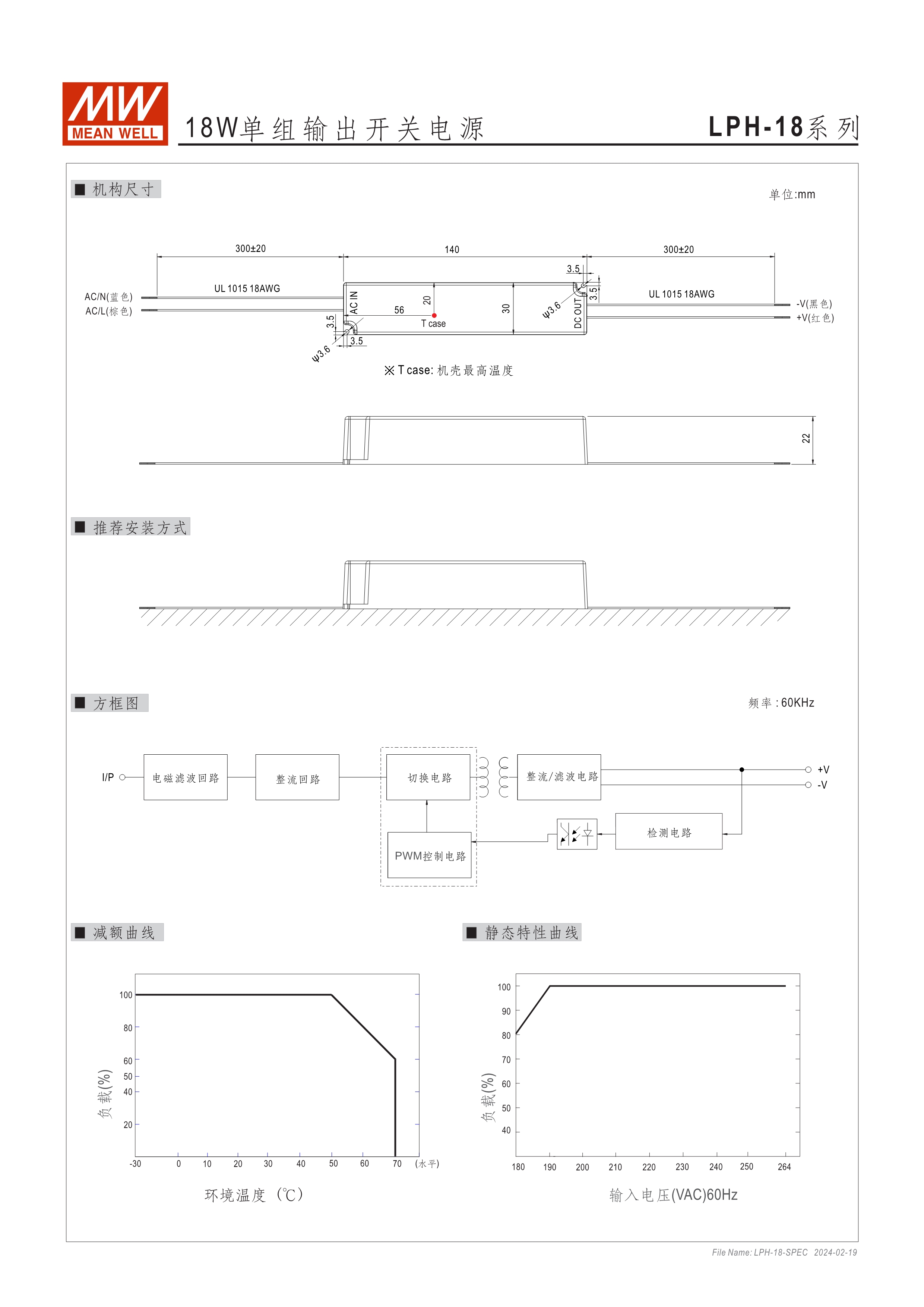 90~264VAC 交流輸入 (18W及150W除外) 長條型塑料外殼,IP67防護(hù)等級 經(jīng)濟(jì)型系列 可承受300VAC突波輸入達(dá)5秒(LPV/C-20/35/60/100) -30~70℃寬工作環(huán)溫范圍 Type "HL" LED電源適用在安裝于Class I, Division 2 類 危險地點(diǎn)之照明燈具(僅LPVL-150) 適合于經(jīng)濟(jì)型LED照明及LED電子廣告牌相關(guān)應(yīng)用