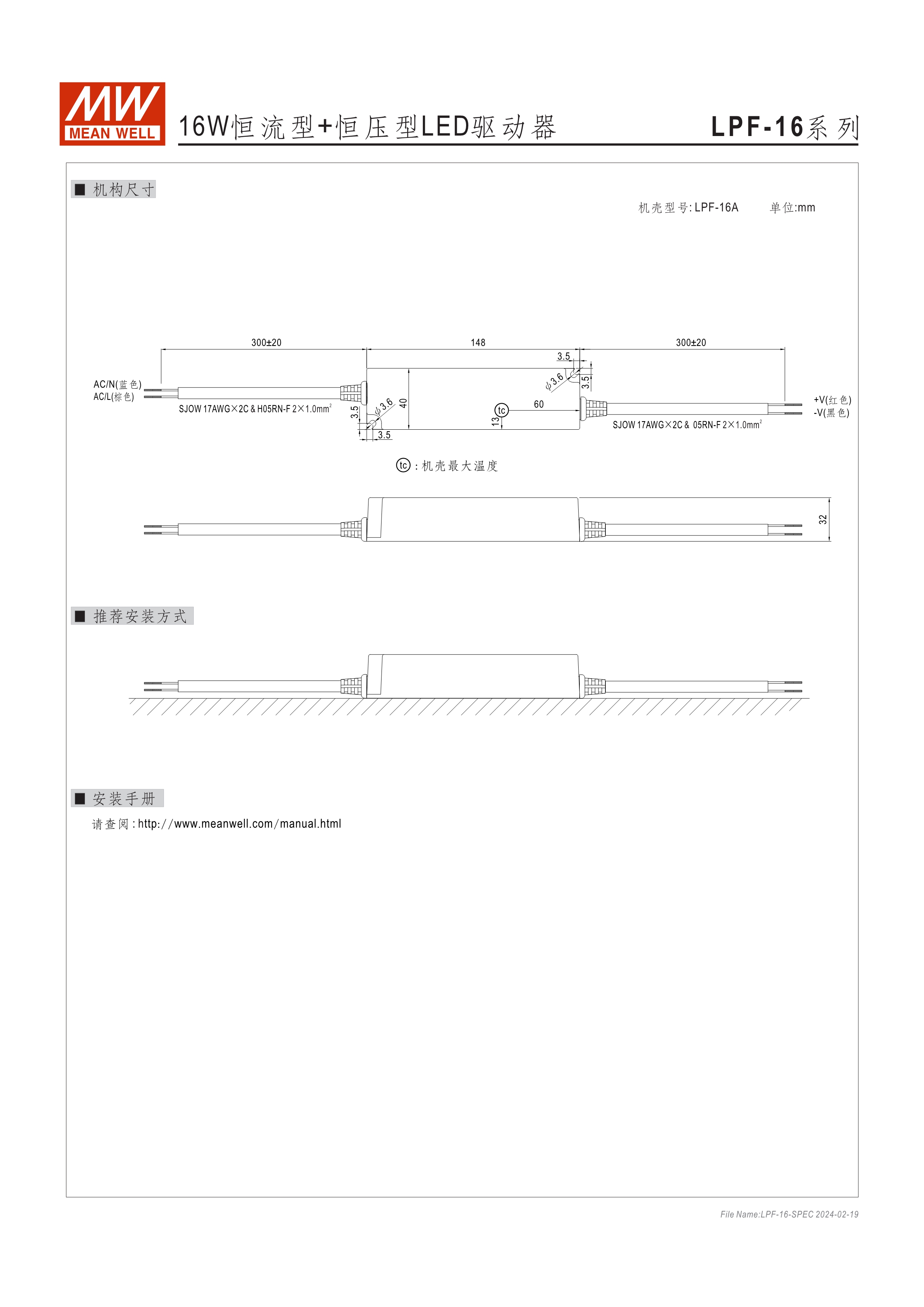 90~305VAC交流輸入, 內(nèi)建主動(dòng)式功率因子矯正功能(active PFC) 塑料外殼,IP67防護(hù)等級(jí)(16W需選購) Class II設(shè)計(jì),無FG D type 機(jī)種內(nèi)建三合一調(diào)光功能(1~10VDC,PWM信號(hào)或電阻) Type "HL" LED電源適用在安裝于Class I, Division 2 類 危險(xiǎn)地點(diǎn)之照明燈具(LPF-90/90D) 適合于LED照明及LED電子廣告牌相關(guān)應(yīng)用 5年保固期