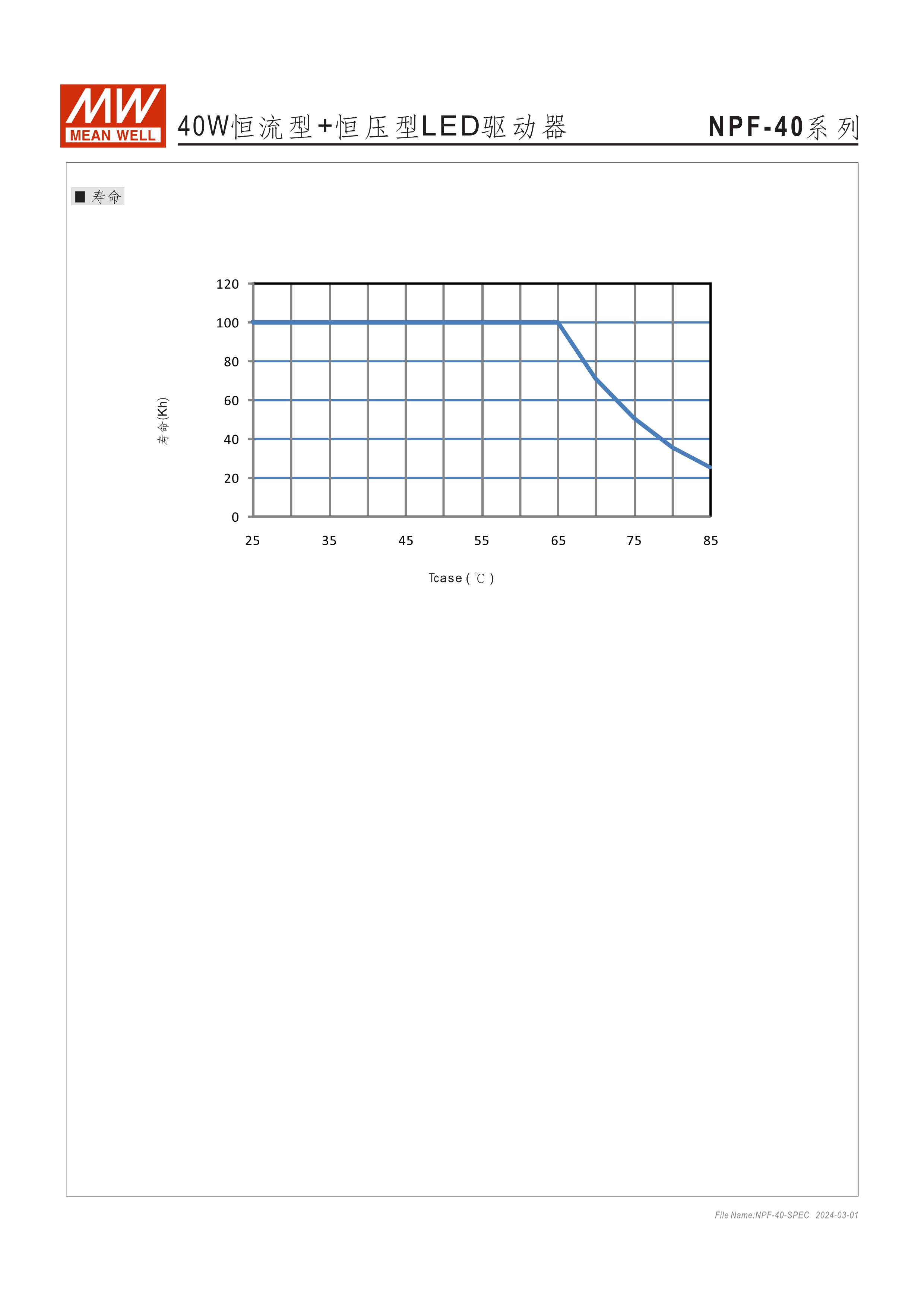 90~305VAC交流輸入, 內(nèi)建主動(dòng)式功率因子矯正功能(active PFC) 塑料外殼,IP67防護(hù)等級(jí) Class II設(shè)計(jì),無(wú)FG 空載/待機(jī)消耗瓦數(shù)<0.15W(D type機(jī)種為<0.5W) D type機(jī)種內(nèi)建三合一調(diào)光功能(0~10VDC, PWM信號(hào)或電阻,可關(guān)斷) Type "HL" LED電源適用在安裝于Class I, Division 2 類(lèi) 危險(xiǎn)地點(diǎn)之照明燈具[NPF-40(D)/-60(D)/-120(D)] 適合于LED照明及LED電子廣告牌相關(guān)應(yīng)用 5年保固期