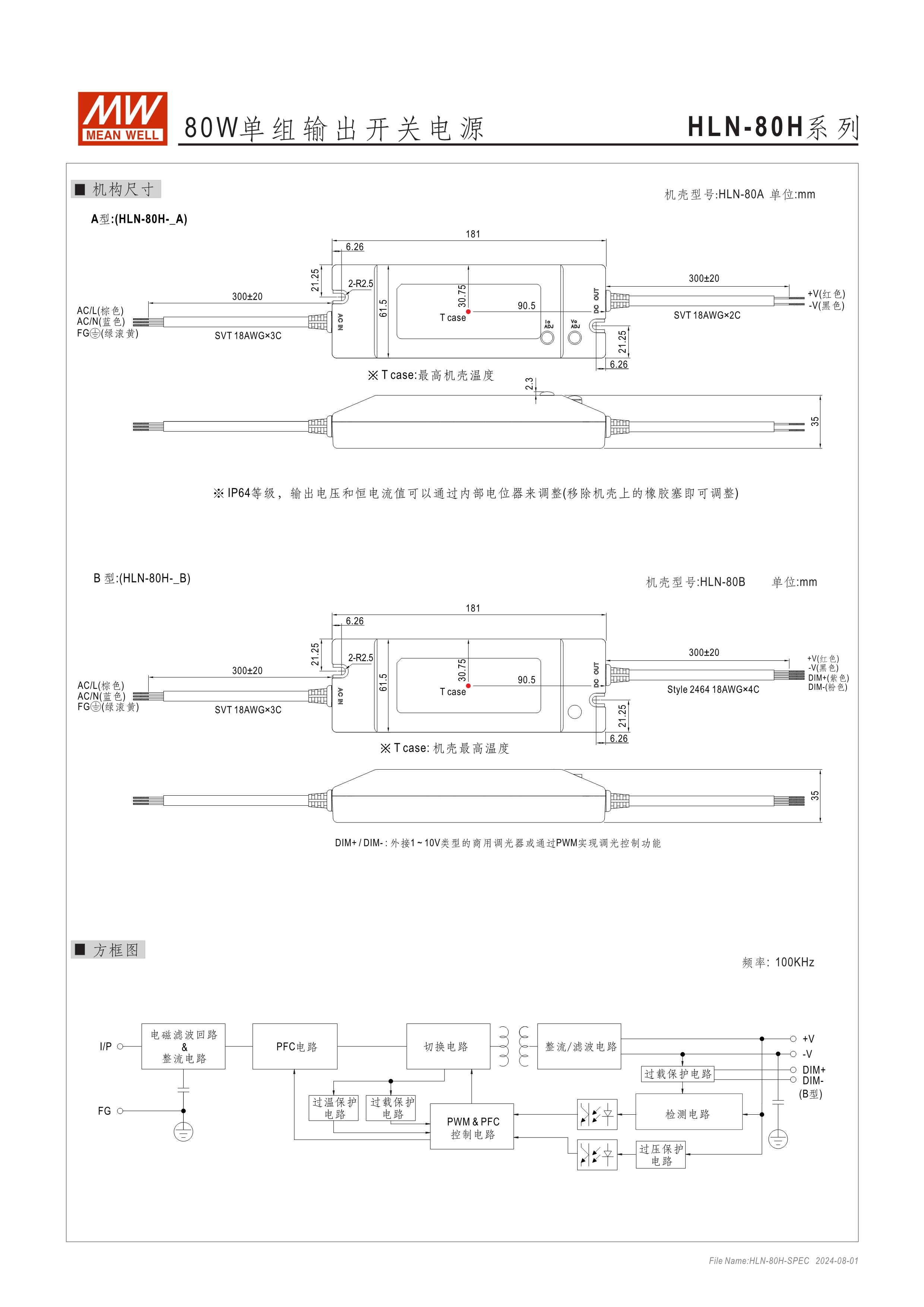 90~305VAC交流輸入, 內(nèi)建主動式功率因子矯正功能(active PFC) 塑料外殼,IP64防護等級 B type機種:內(nèi)建三合一調(diào)光功能(1~10VDC,PWM信號或電阻) A type機種:用戶可彈性調(diào)整輸出電壓與電流 適合于LED室內(nèi)照明及LED電子廣告牌相關(guān)應(yīng)用