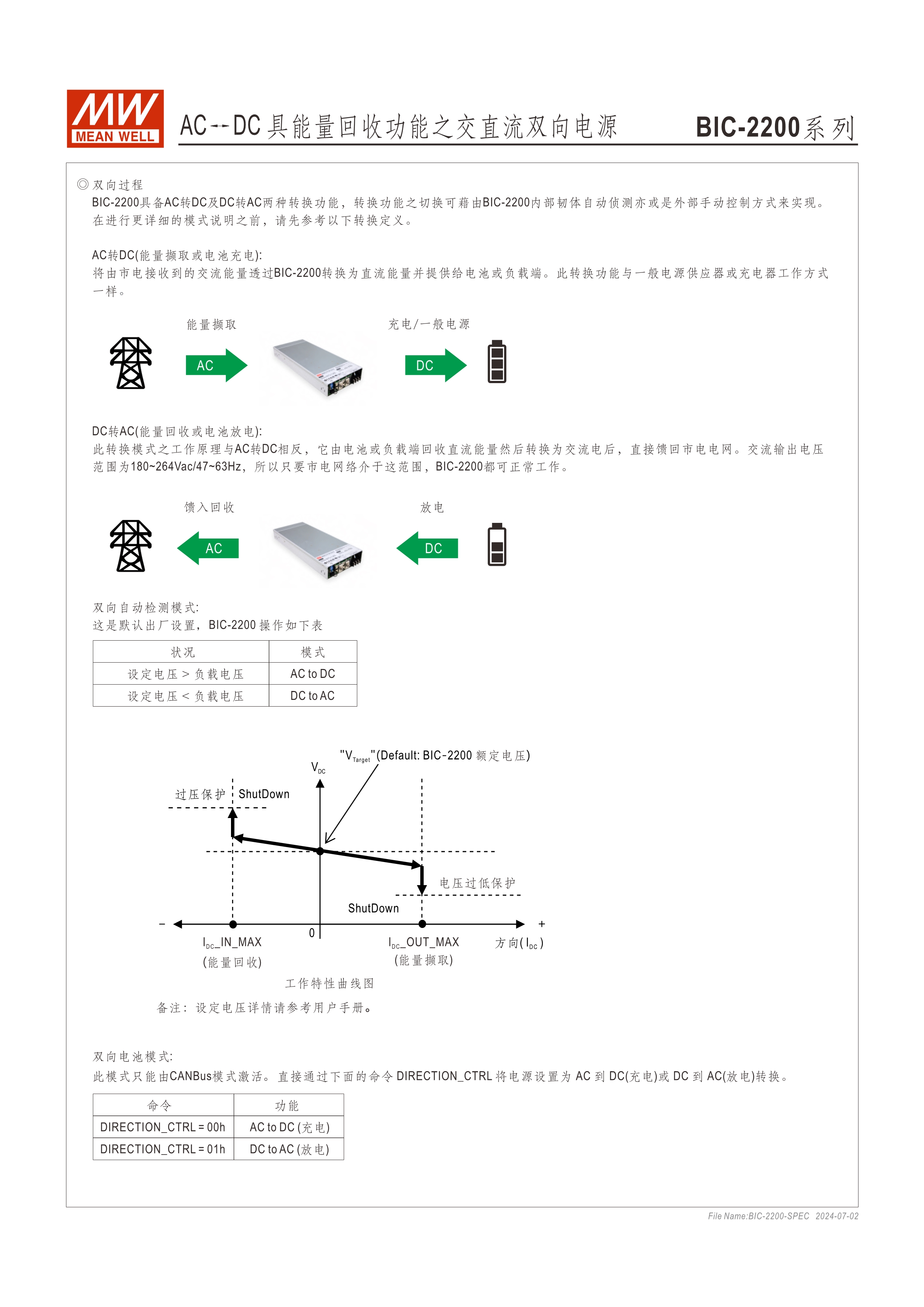 系統(tǒng)電源解決方案 (PDF) 低高度1U薄型化設(shè)計(jì) 全機(jī)數(shù)字化控制,雙向轉(zhuǎn)換效率高達(dá)93% 快速雙向切換響應(yīng)時(shí)間<1ms (AC/DC ? DC/AC) CB/UL/TUV 62368法規(guī)認(rèn)證,電路設(shè)計(jì)符合IEC 62477法規(guī) 最高可支持5臺(tái)并聯(lián)應(yīng)用,功率擴(kuò)增至11kW 回饋電網(wǎng)電流總諧波失真<3% 數(shù)字通訊可強(qiáng)制切換充放電模式(選配CANBus機(jī)型) 保護(hù)功能:主動(dòng)式孤島保護(hù)、AC異常保護(hù)、DC過電壓保護(hù)、過負(fù)載保護(hù)、短路保護(hù)、過溫度保護(hù) 5年保固