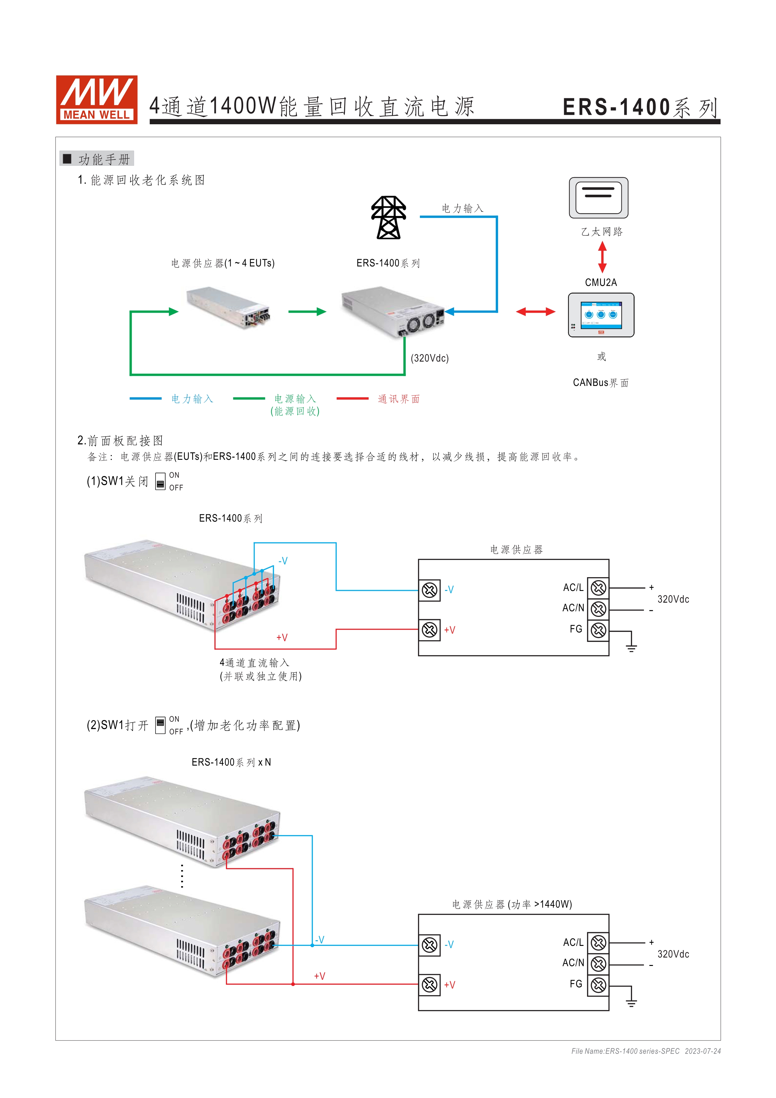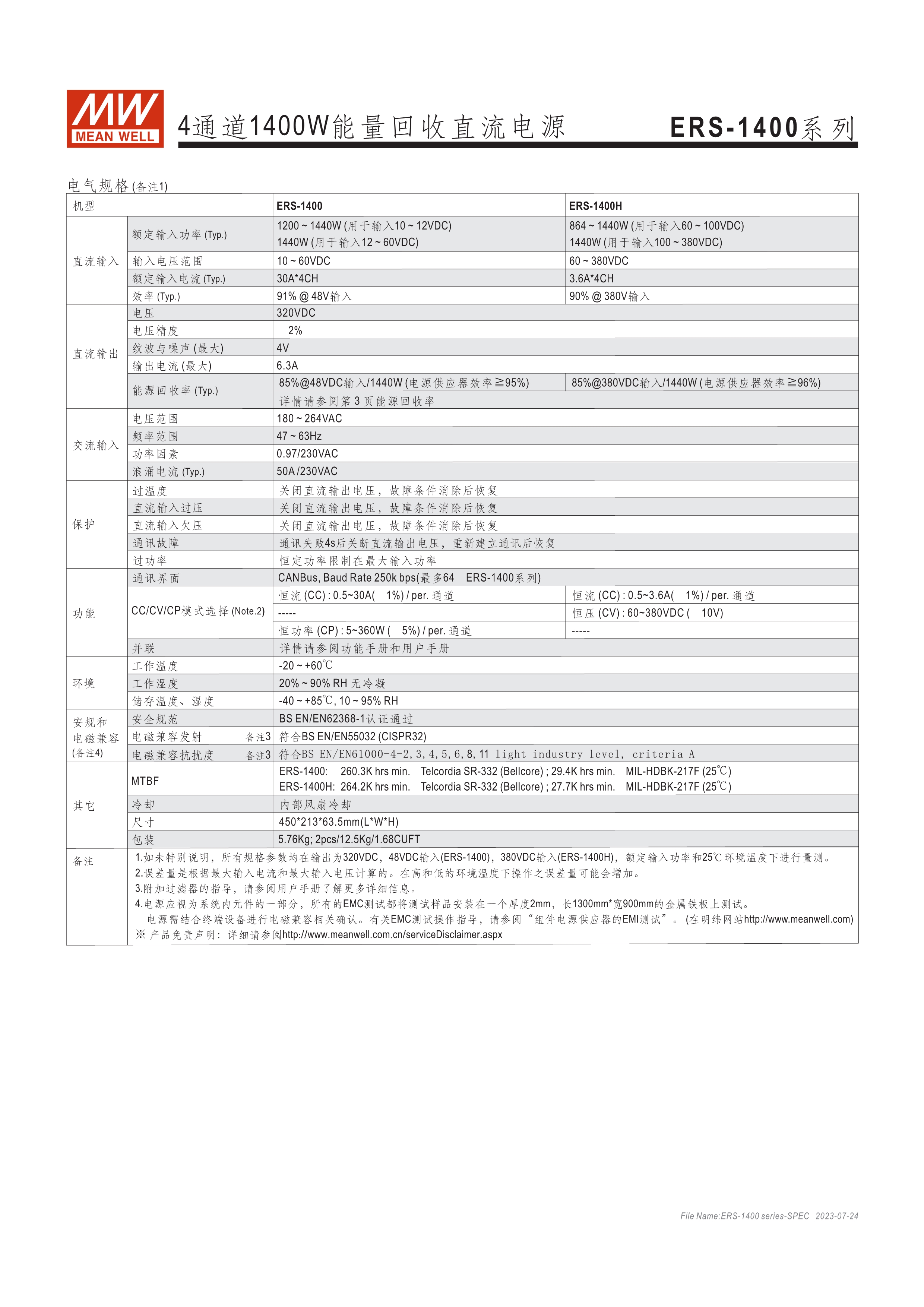 寬輸入電壓范圍10~60VDC/60~380VDC(視機(jī)型而定) 效率高達(dá)91% 靈活配置的模塊化設(shè)計(jì) 彈性的CC/CV/CP操作模式 通過CMU2A實(shí)現(xiàn)CAN總線協(xié)議遠(yuǎn)程控制和監(jiān)控控制 可連接最多64臺(tái)ERS-1400系列 保護(hù)功能: 過電壓、欠電壓、過熱、通信錯(cuò)誤 3年保固期