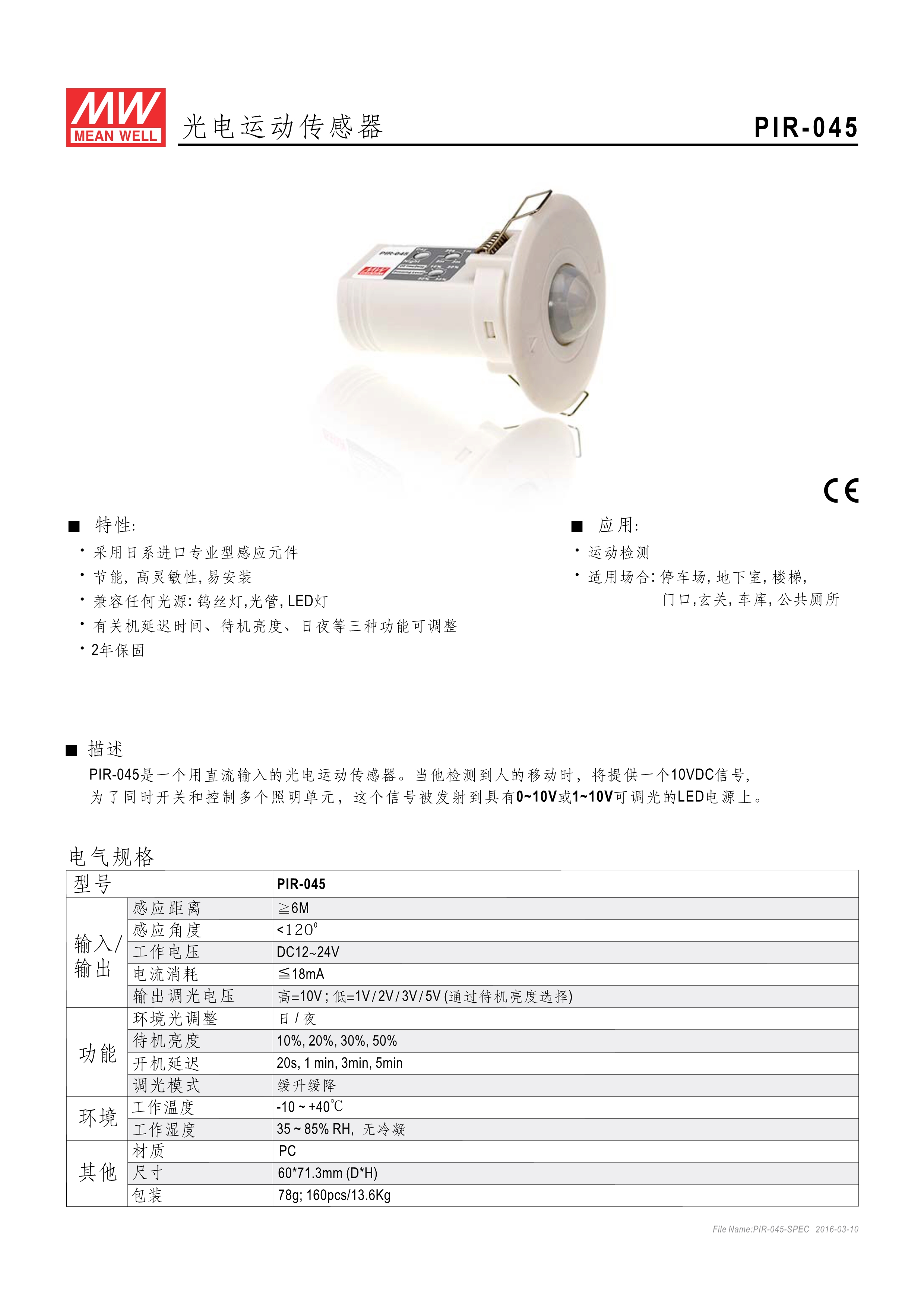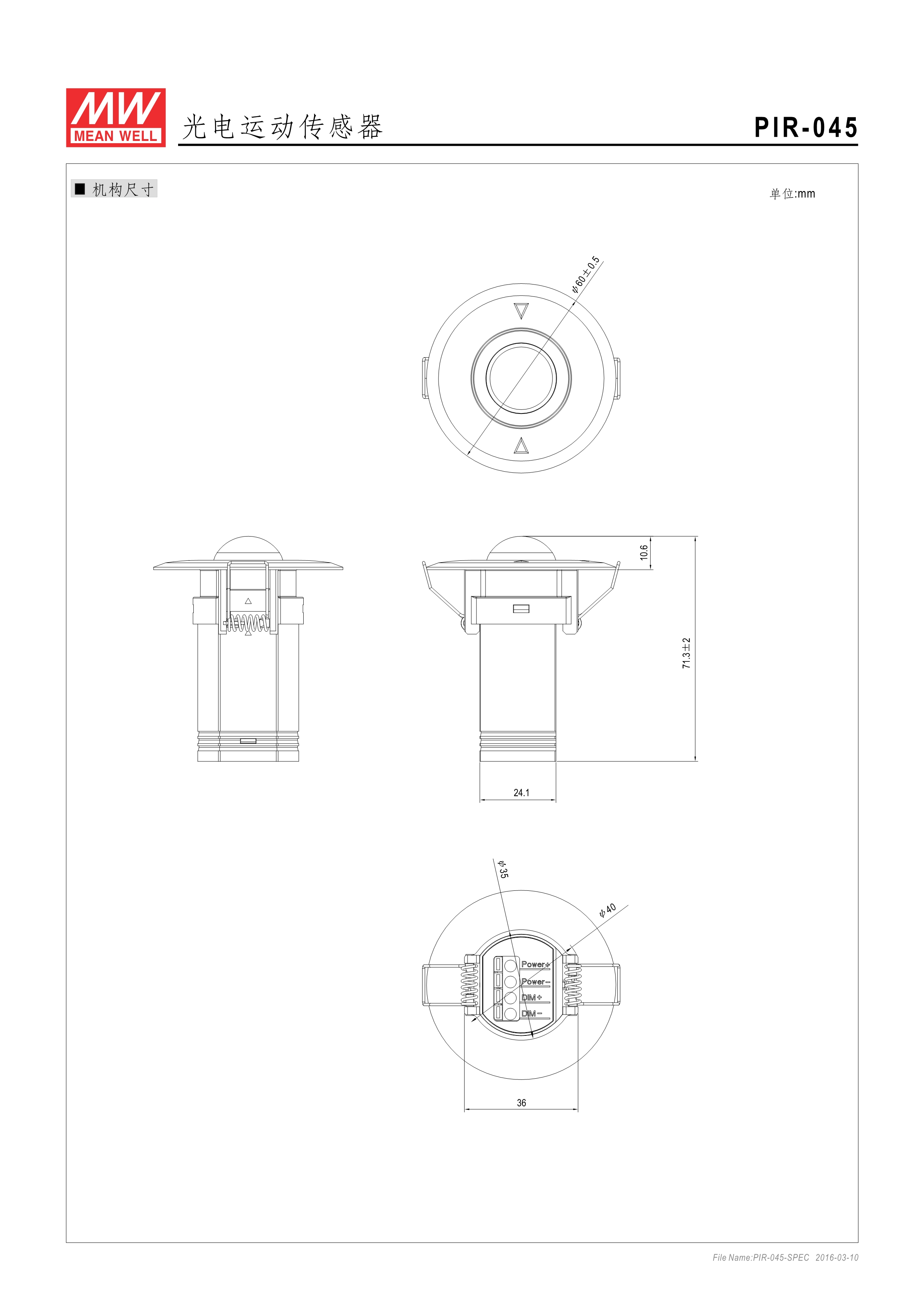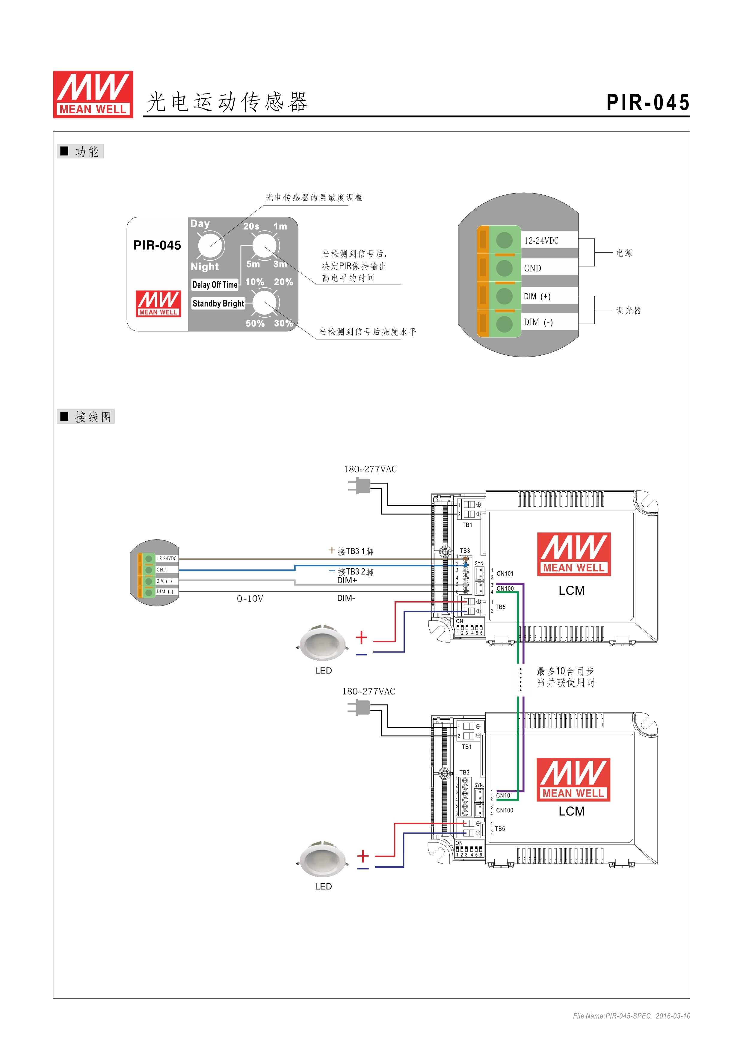 內(nèi)置被動紅外線傳感器(PIR)模塊 MCU控制器、無繼電器 關(guān)燈延時/分級調(diào)光/靈敏度 可調(diào)