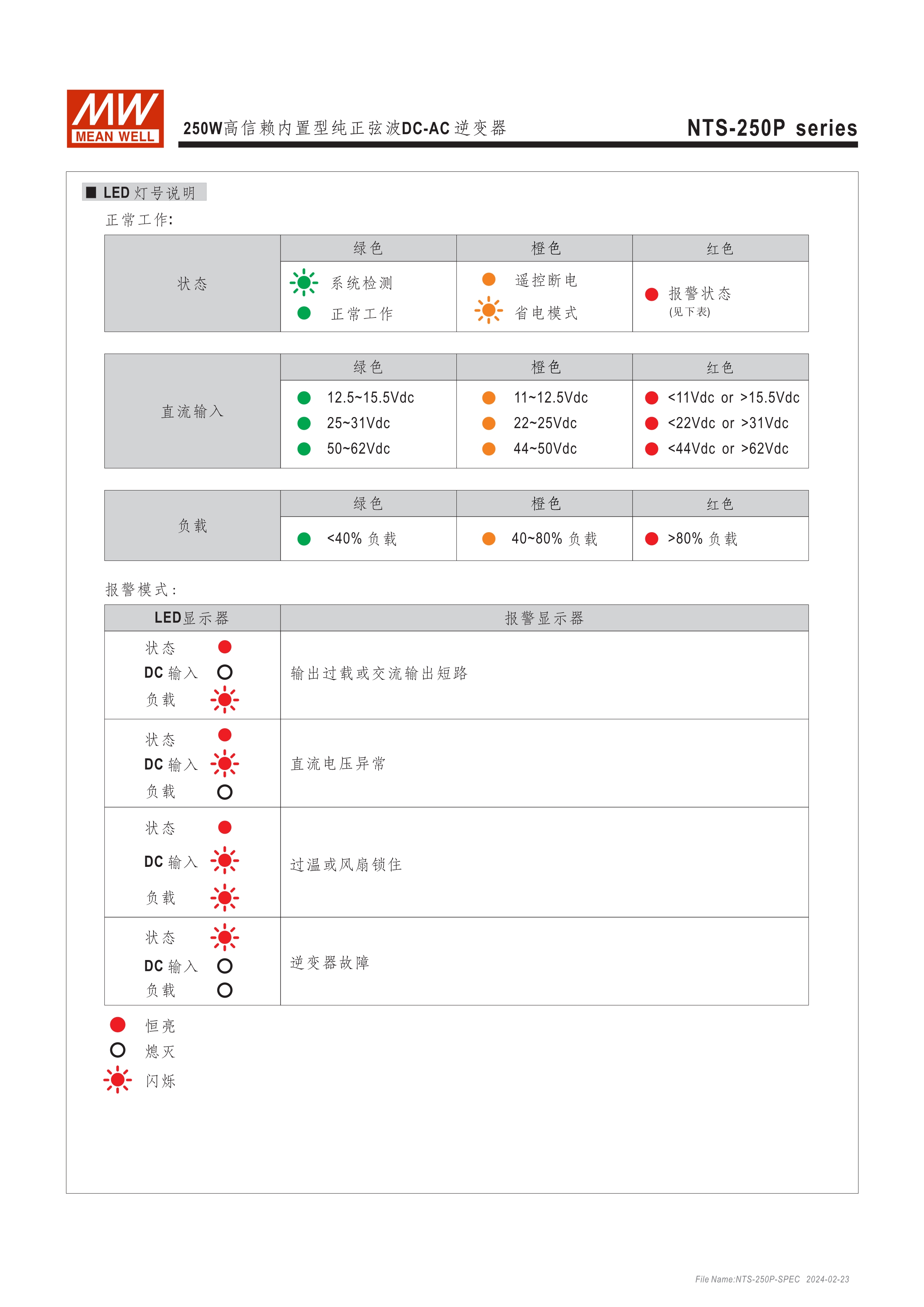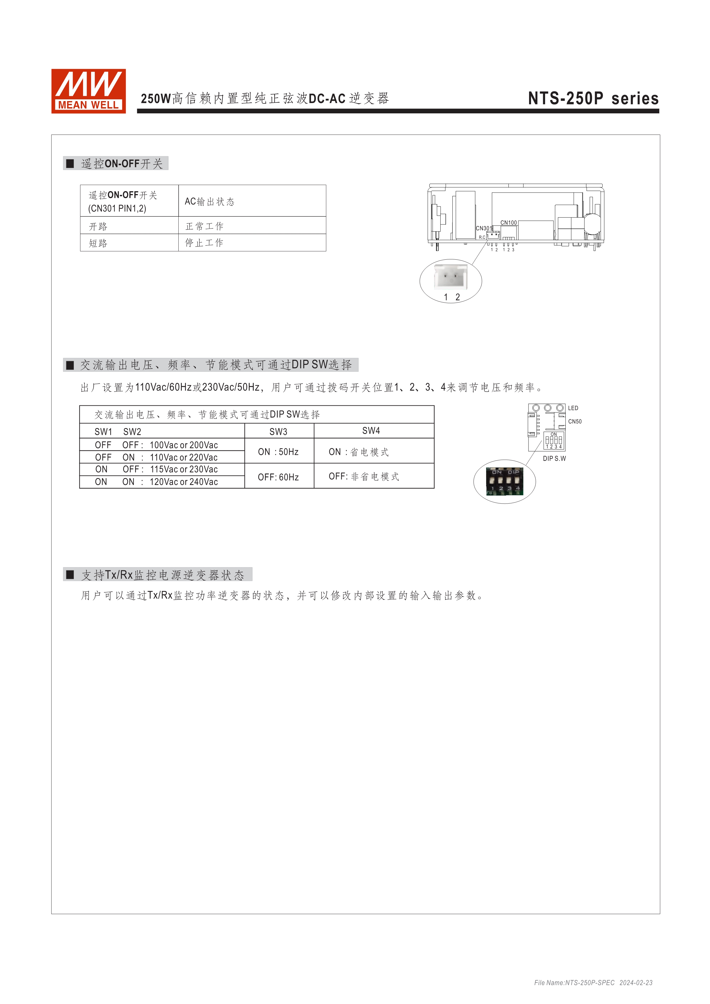 DC-AC純正弦波輸出 (THD<3%) 無(wú)風(fēng)扇設(shè)計(jì),效率最高達(dá)93%,可自然風(fēng)冷散熱 瞬間峰值功率達(dá)雙倍輸出 內(nèi)建DIP S.W可彈性自調(diào)AC輸出電壓、頻率、節(jié)能模式 多重智能保護(hù)功能: DC輸入側(cè) - 極性反接、電壓過(guò)低、電壓過(guò)高保護(hù) AC輸出側(cè) - 短路、超載、過(guò)熱保護(hù)