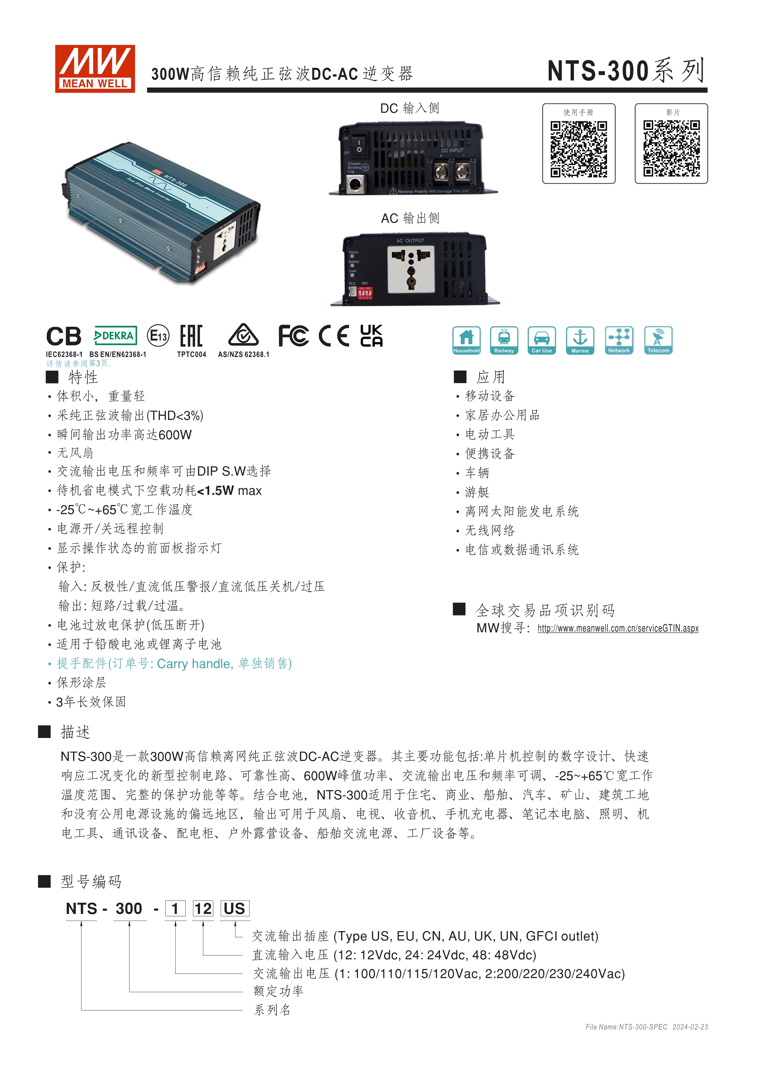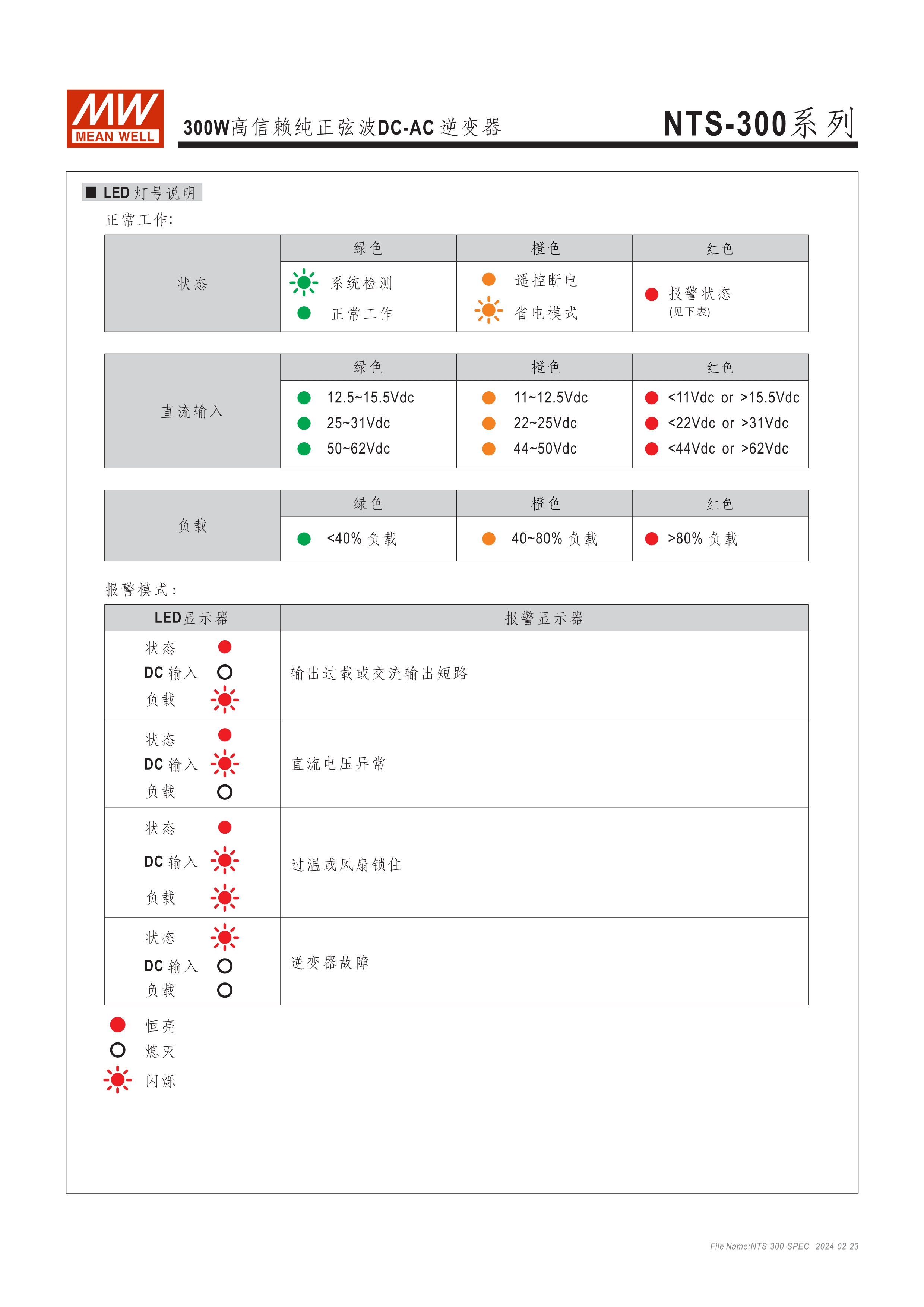 DC-AC純正弦波輸出 (THD<3%) 無風扇設計,效率最高達93%,可自然風冷散熱 內建DIP S.W可彈性自調AC輸出電壓、頻率、節(jié)能模式 多重智能保護功能: DC輸入側 - 極性反接、電壓過低、電壓過高保護 AC輸出側 - 短路、超載、過熱保護