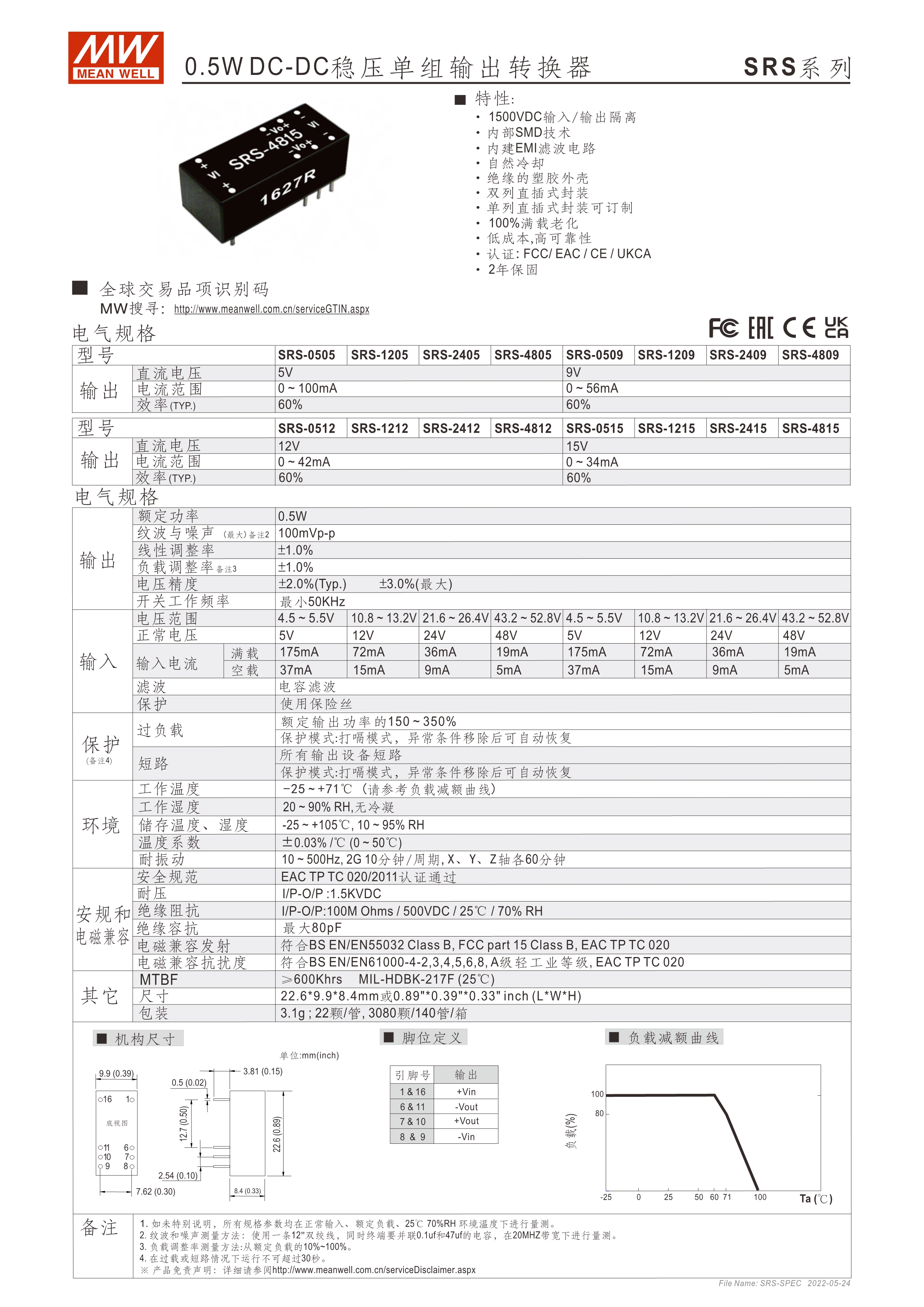 模塊型快選表 提供穩(wěn)壓及非穩(wěn)壓輸出機(jī)種 ±10% 輸入范圍 板上模塊型,需插件于系統(tǒng)主PCB上